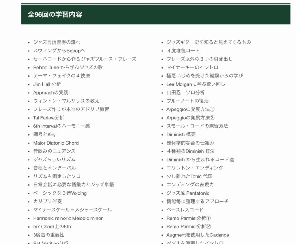 ジャズギター大学で取り組むカリキュラムはこんなにたくさんあります。